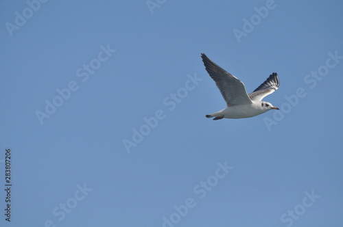 Obraz premium The beautiful bird Larus ridibundus (Black-headed Gull) in the natural environment