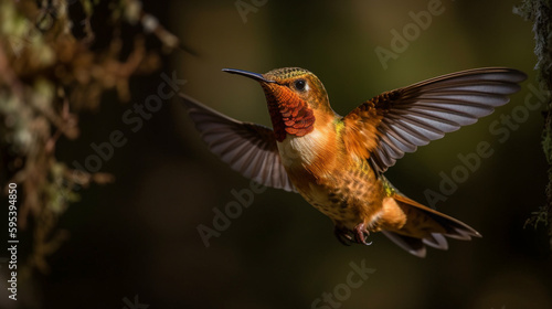© Andy Dean, Fototapeta premium The Beautiful Endangered Rufous Hummingbird - Selasphorus Rufus - Generative AI.