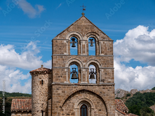 © RODRIGO, Fototapeta premium The beautiful facade with bell tower of the stone church of a town in Spain