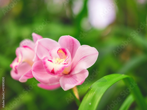 Fototapeta premium The beautiful flower of orchid in the botanical garden with the blurred background for your design.