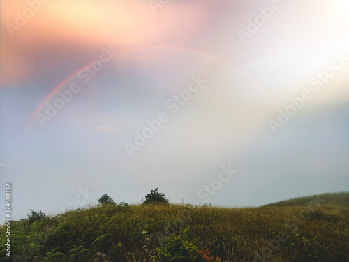 © D. WoStock, Naklejka premium The beautiful hill on the top of the hill and the bright light in the sky