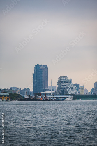 Fototapeta premium The beautiful Kaohsiung Music Center viewed from the ferry crossing to Cijin Island, Kaohsiung, Taiwan.