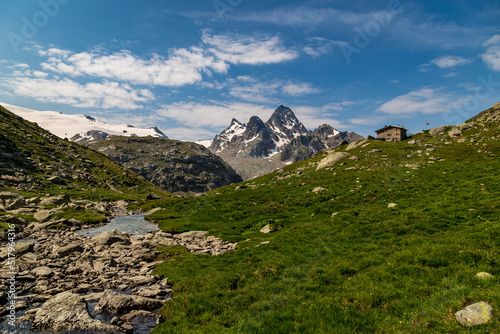 Fototapeta premium The beautiful mountains and lakes over La Thuile in a summer day