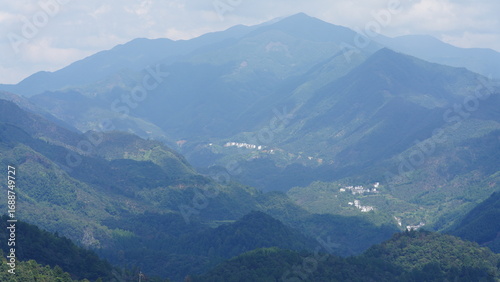 © Bo, Fototapeta premium The beautiful mountains view from the top of the hill in spring