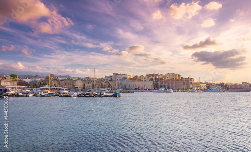 Fototapeta premium The beautiful old harbor of Chania, at sunset, Crete, Greece.