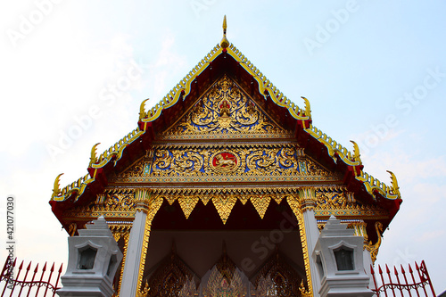 © Wootipong, Naklejka premium The beautiful ordination hall of thai temple in Bangkok