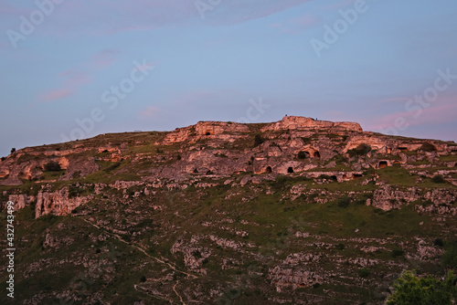 © Giuseppe, Fototapeta premium the beautiful stones of Matera and their caves at sunset