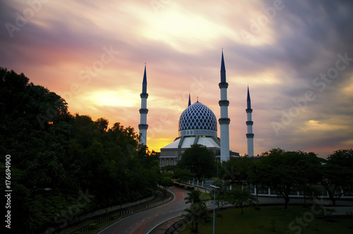 Naklejka premium The beautiful Sultan Salahuddin Abdul Aziz Shah Mosque over stunning sunrise...