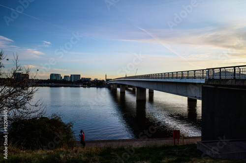 © KrchannelAustralia, Obraz premium The beautiful sunrise reflecting on lake burley griffin, Canberra, in the morning