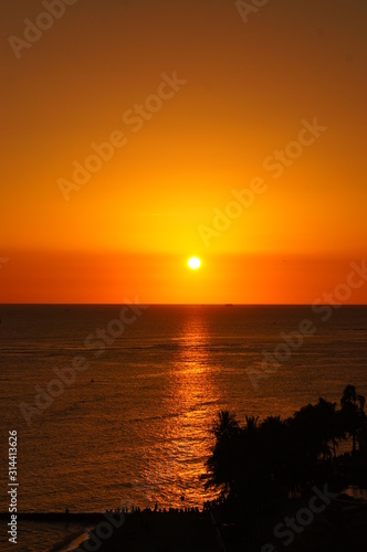 Naklejka premium the beautiful sunset of waikiki beach