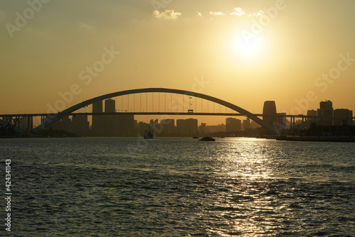 © Bo, Naklejka premium The beautiful sunset view along the river in the city