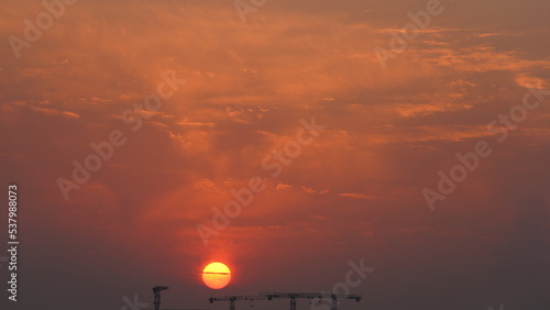 Fototapeta premium The beautiful sunset view with the colorful clouds and sky in the city