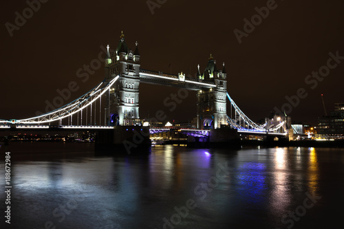 Obraz premium The beautiful Tower Bridge, London, UK captured on a cold and frosty evening with light reflections