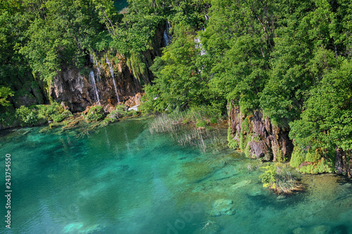 Naklejka premium The beautiful view na the turquoise clear water of Plitvice lake.