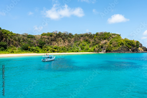Fototapeta premium The Beautiful view of Sancho Beach from the sea, with turquoise clear water,...