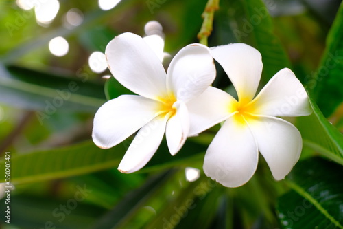 Fototapeta premium The Beautiful White Plumeria flowers are booming.
