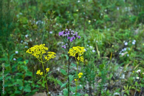 © Chongbum Thomas Park, Obraz premium The beautiful wild flower on the mountain hiking.