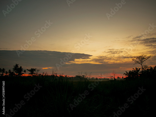 © Hardiansyah, Obraz premium the beauty of the natural scenery of rice fields in the morning and evening