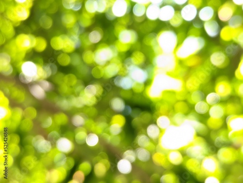 © Ainur, Fototapeta premium the beauty of the photo of the bokeh blur circles produced by the light between the green paddy leaves and branches