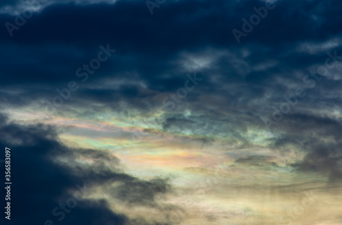 © Nueng, Naklejka premium The beauty of the rainbow clouds Above the black clouds in the evening.