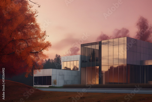 Obraz premium The Beauty of Twilight: A Modern Glass House Illuminated in Style