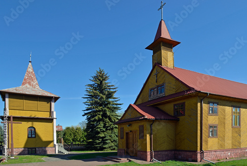 © Jacek Sakowicz, Fototapeta premium The belfry was built in the seventies of the 20th century at the Catholic Church of the Exaltation of the Holy Cross in the town of Platerów in Mazovia, Poland.