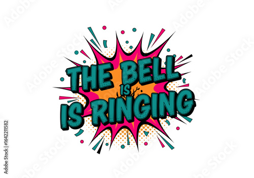Fototapeta premium THE BELL IS RINGING. Pop art comic book style text effect with explosion and...