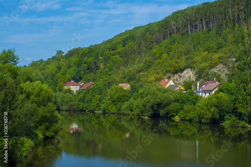 © Николай Батаев, Fototapeta premium The bend of a river with several houses on a hill in Europe