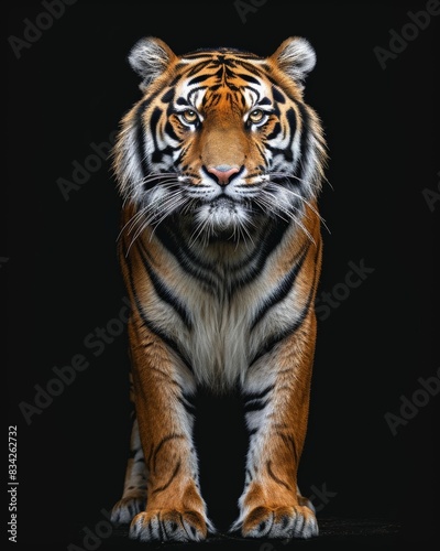 Fototapeta premium the Bengal Tiger, portrait view, white copy space on right Isolated on black...
