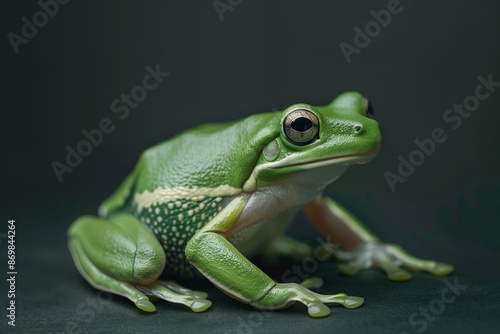 © Eyestetix Studio, Obraz premium the beside view American Green Tree Frog, left side view, white copy space on right, isolated on black background