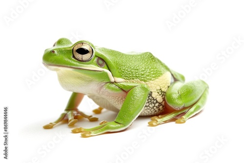 © Eyestetix Studio, Obraz premium the beside view American Green Tree Frog, left side view, white copy space on right, isolated on white background