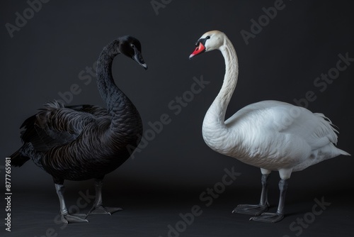 © Eyestetix Studio, Obraz premium the beside view Black Swan, left side view, white copy space on right, isolated on black background