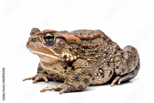 © Eyestetix Studio, Fototapeta premium the beside view Common Toad, left side view, white copy space on right, dutch angle view, isolated on white background
