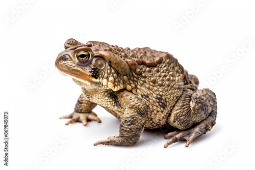 © Eyestetix Studio, Fototapeta premium the beside view Common Toad, left side view, white copy space on right, isolated on white background