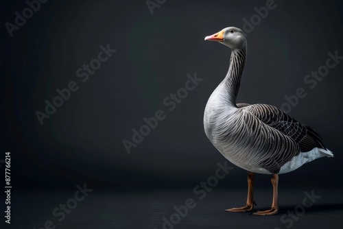 © Eyestetix Studio, Obraz premium the beside view Greylag Goose, left side view, white copy space on right, isolated on black background