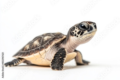 © Eyestetix Studio, Fototapeta premium the beside view Hawksbill Sea Turtle, left side view, white copy space on right, Isolated on White Background