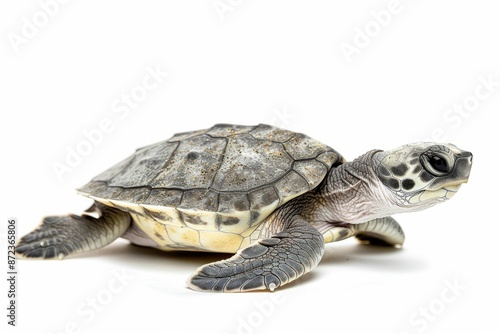 © Eyestetix Studio, Obraz premium the beside view Kemp's Ridley Turtle, left side view, white copy space on right, dutch angle view, isolated on white background