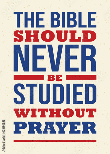 Fototapeta premium The Bible should never be studied without prayer, christian poster vector...