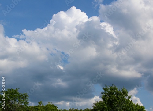 © Al, Obraz premium The big white cloud in the sky over the tree tops.