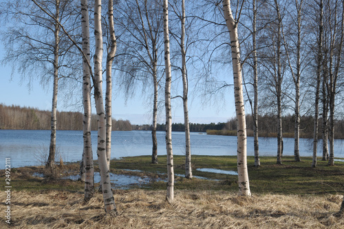© Vojtech Vlk, Fototapeta premium The birch trees on bank of the lake in Finland