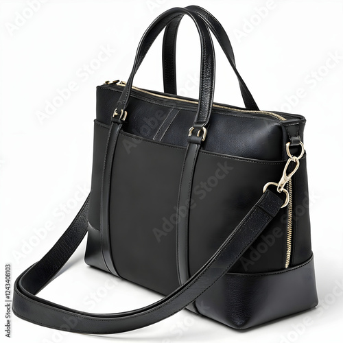 © misbah, Naklejka premium The black bag features a stunning design with a sleek finish and a long, adjustable strap for comfort.