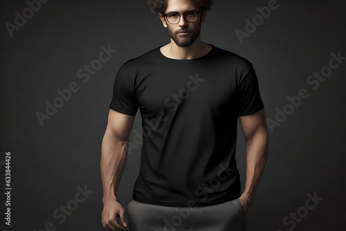 Fototapeta premium The black blank T-shirt serves as a blank canvas, ready to be personalized with any design or graphic. Generative AI's creativity captures the clean and smooth texture of the T-shirt, making it appear
