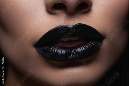 Obraz premium The black hue of her black lipstick adorns her lips like a precious organ, highlighting their allure in a captivating closeup