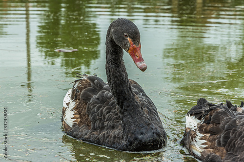 Fototapeta premium The black swan (Cygnus atratus) swims in a pond