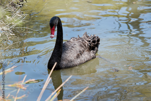 Fototapeta premium the black swan is swimming in the water