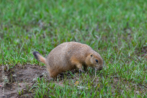 Fototapeta premium The black-tailed prairie dog (Cynomys ludovicianus), Animal eats green grass, Theodore Roosevelt National Park, North Dakota