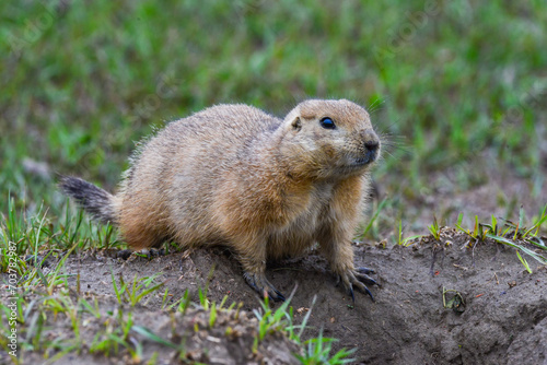 Naklejka premium The black-tailed prairie dog (Cynomys ludovicianus) watching near an...