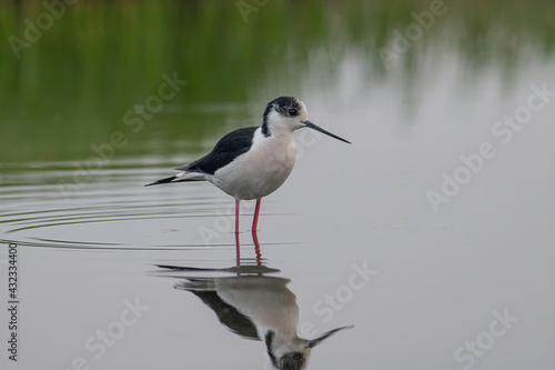 Fototapeta premium The black-winged stilt (Himantopus himantopus) bird on salt lake