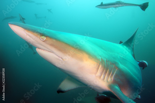 © Karlos Lomsky, Naklejka premium The blacktip shark (Carcharhinus limbatus), portrait in the ocean.
