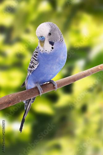 Naklejka premium the blue budgie is on the tree branch